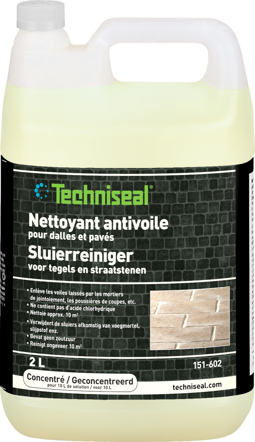 Très efficace et respectueux de l’environnement, le Nettoyant Antivoile concentré de Techniseal nettoie rapidement les dalles et les pavés sans détériorer ou décolorer le support. De plus, contrairement à l’acide chlorhydrique, il dégage très peu d’odeur.